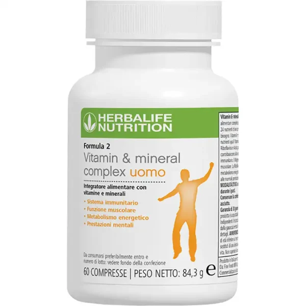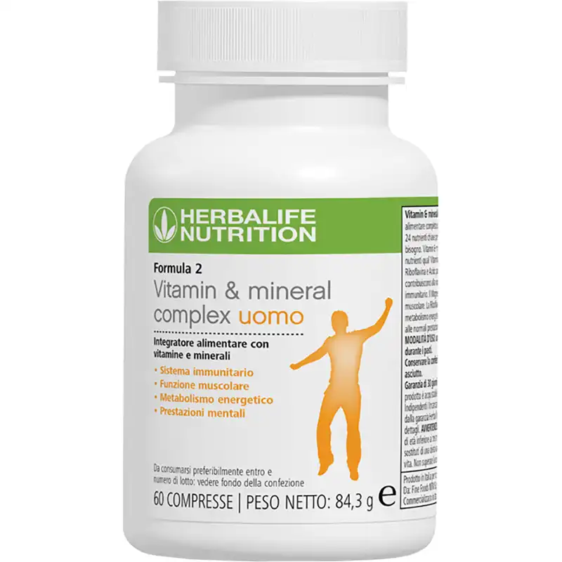 Formula 2 Herbalife Uomo Vitamin e Mineral Complex รจ un modo semplice per dare al tuo organismo 24 nutrienti di cui ha bisogno
