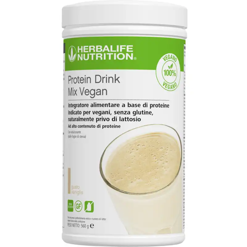 Protein Drink Mix Vegan Herbalife รจ 100% vegano, ad alto contenuto di proteine, senza glutine, senza zuccheri, naturalmente privo di lattosio e ultra cremoso.